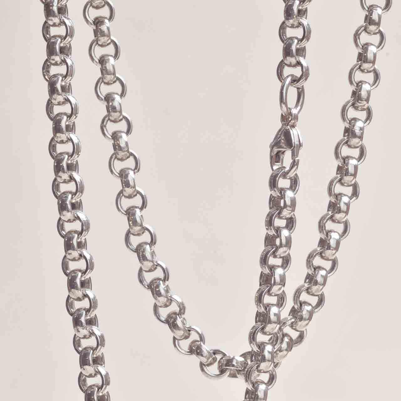 Coarse, heavy pea link chain in 925 sterling silver. Length 52.5 cm. Only 1 piece available. Shown here together with the pendant Astrid with hammered surface. Note: if you buy a pendant as well, the pendant must have a larger loop, for example like the pendants Astrid or Clara/Josephine. Please contact us if you want to buy a different pendant, and we will adjust the loop to fit the chain.