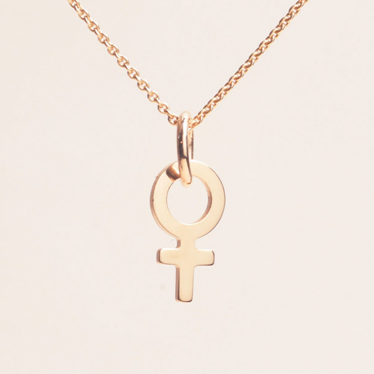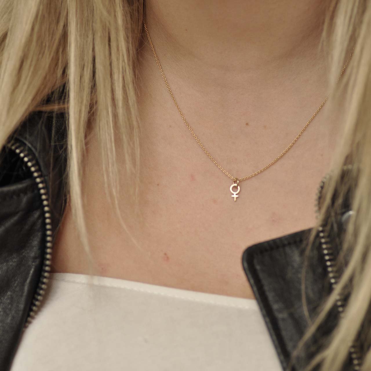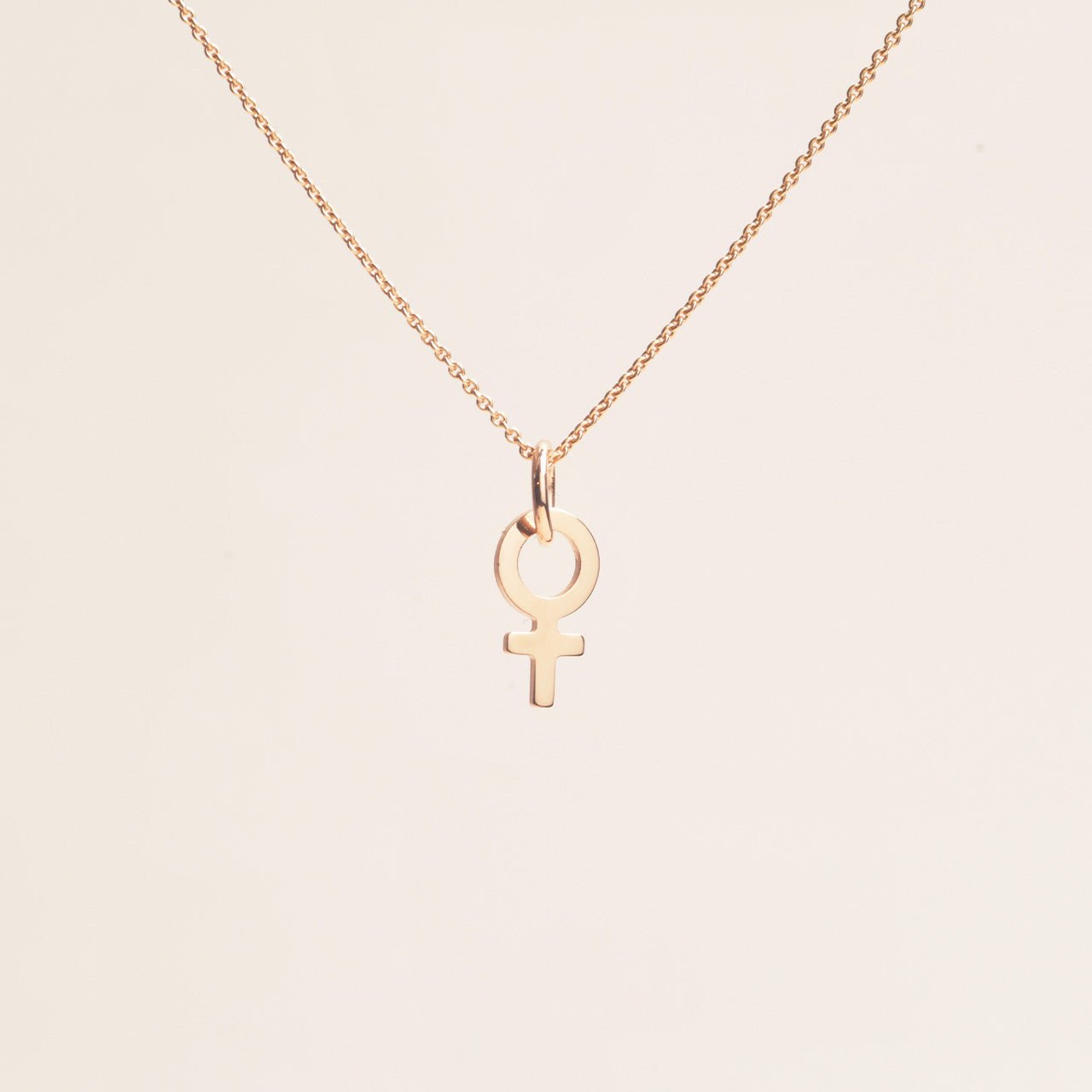 Perfect everyday jewelry for the feminist who loves gold. Handmade pendant in the shape of a small female symbol in 18k recycled gold. The female symbol measures approximately 9mm. Sold without a chain; if you want to buy a gold chain, you can find them under the tab - CHAINS Shown in the video with a 0.8mm ø 18k gold chain, 50 cm long. And in the pictures around the neck with the gold chain that is 0.8mm ø and 42 cm long.