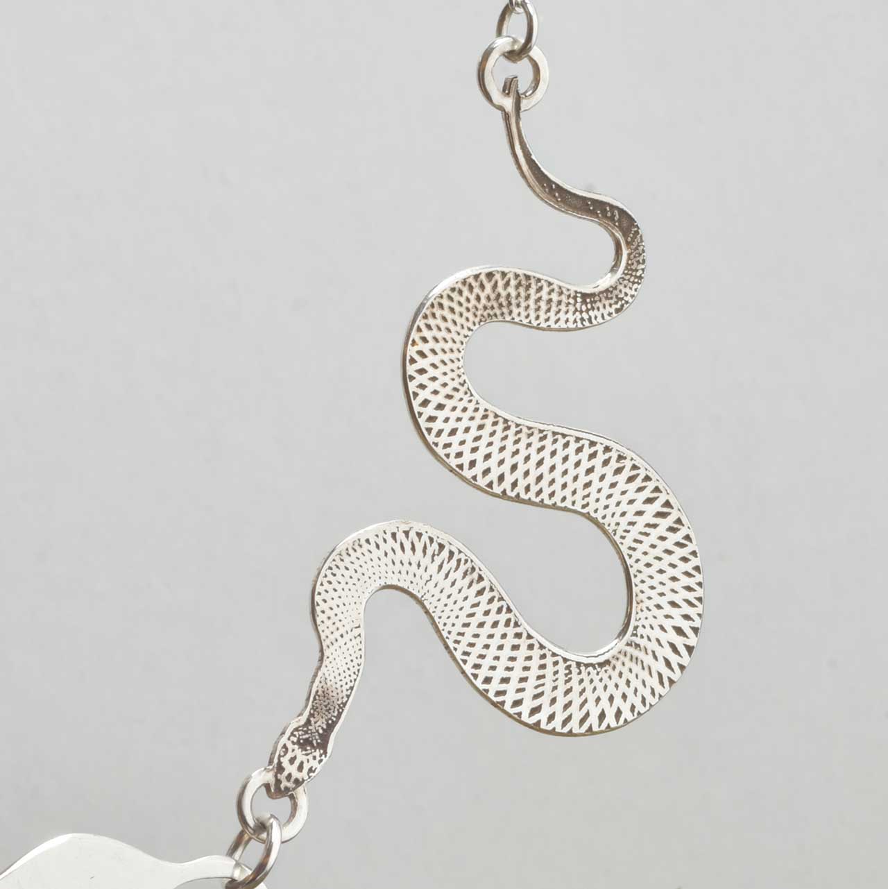 The Guardians of Life is a statement necklace designed to embody the ancient connection between life, renewal, and transformation. Featuring two large snakes on either side of a larger womb symbol, this piece represents both protection and creative power. The necklace is a powerful expression of a woman's ability to create, embrace her strength, and be reborn through life's cycles. Handcrafted from recycled 925 sterling silver. Includes an extension chain to adjust the necklace length. 42 cm at shortest and up to 48 cm at longest.