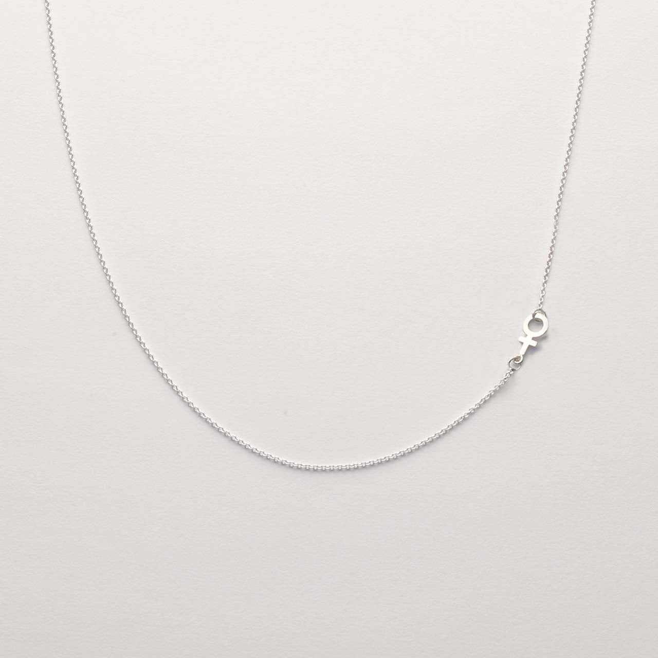 Handcrafted necklace in 925 sterling silver with a small female symbol (9mm) that follows along the chain.
