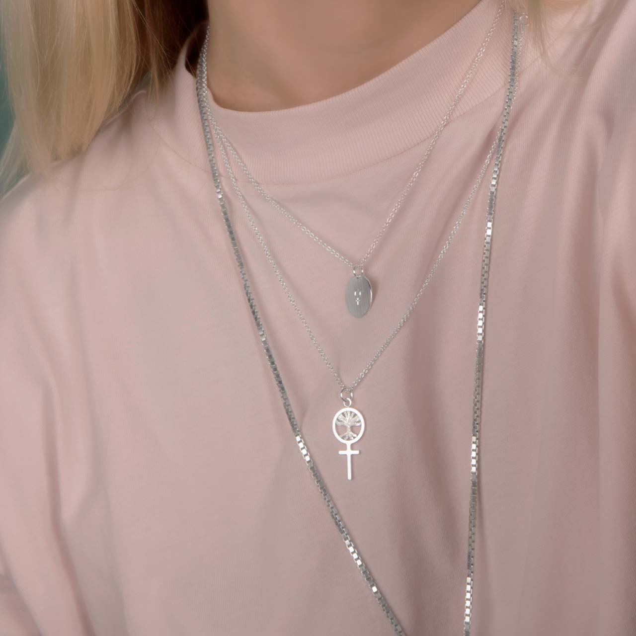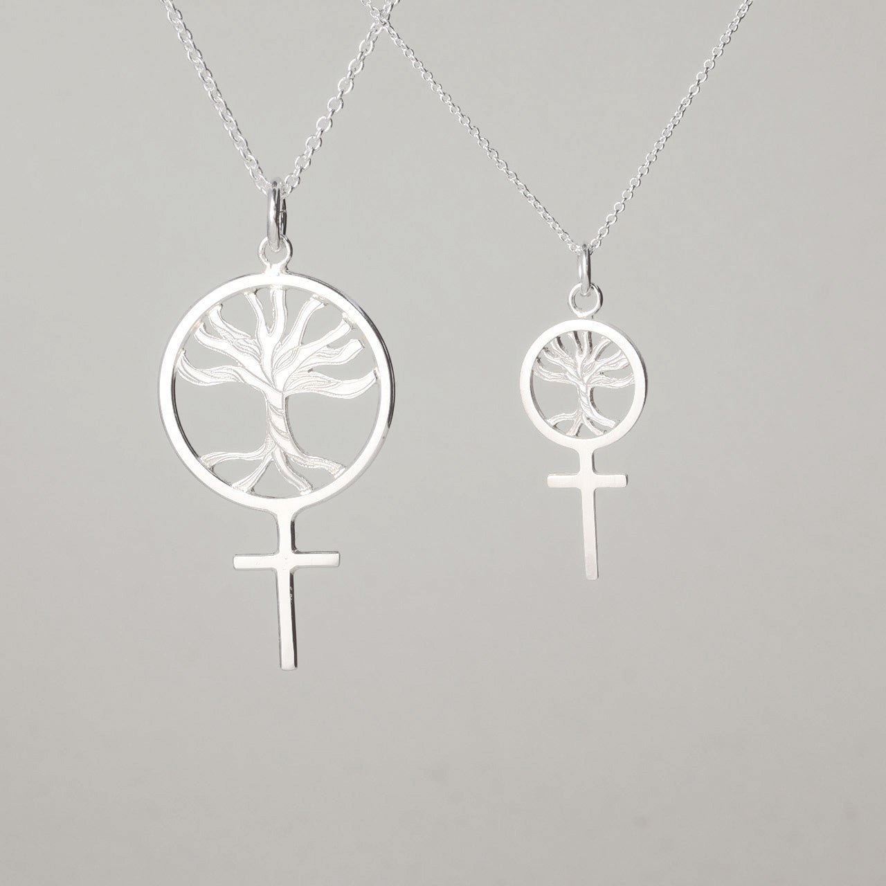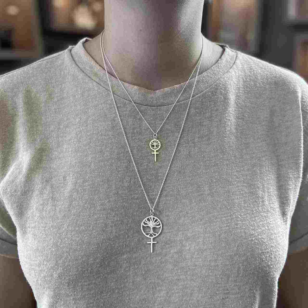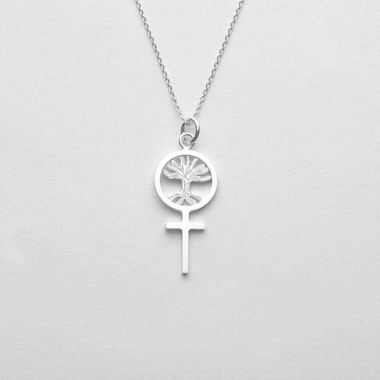 A feminist pendant featuring the Tree of Life to celebrate the amazing female body! Handcrafted in 925 sterling silver with the "tree's" branches engraved. The small Tree of Life jewelry piece is about 30mm including the loop and is shown here with a 1.5mm chain that is 45cm long.
