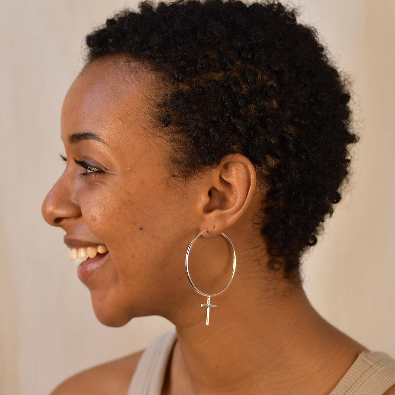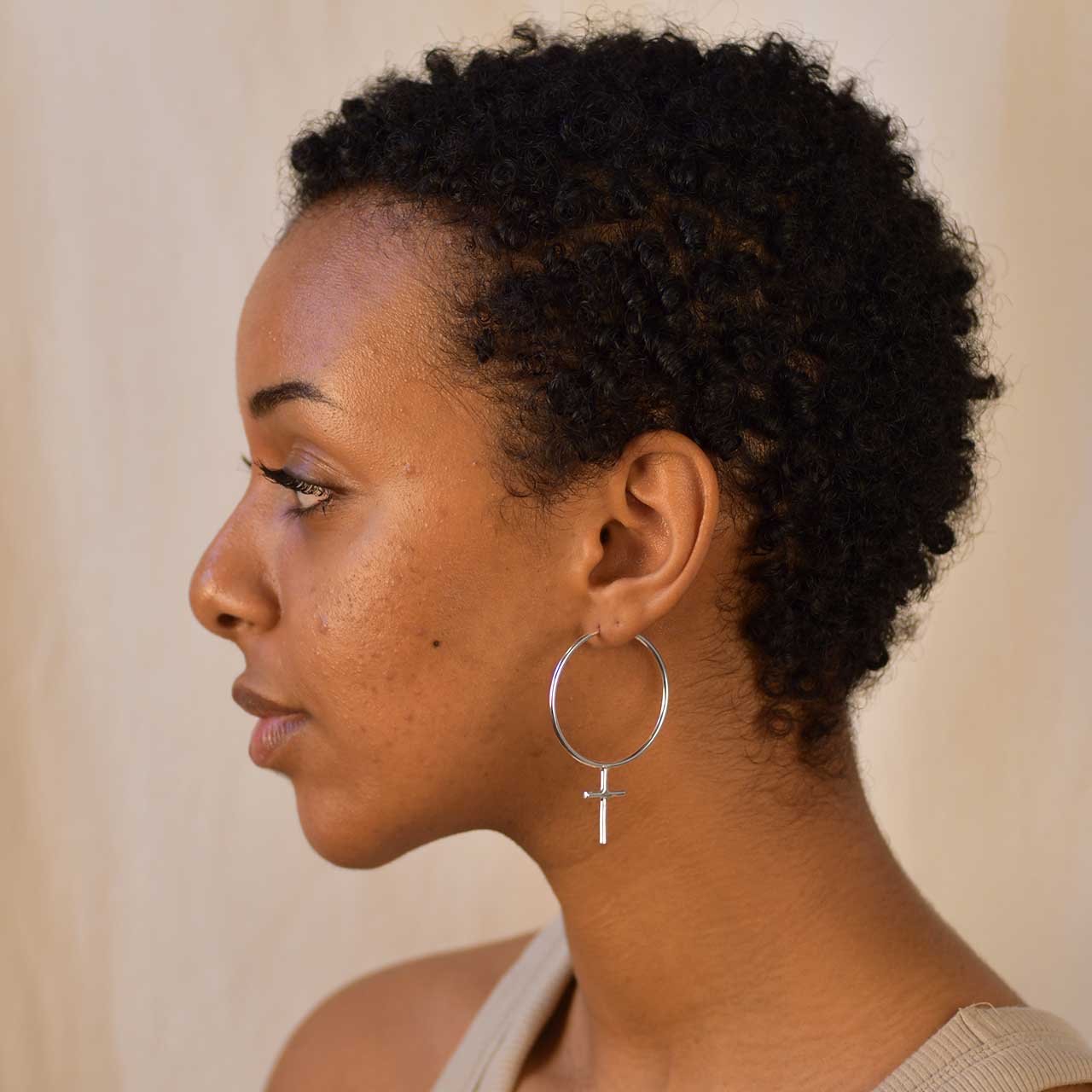 Large female symbol earring in sterling silver. Available in 2 sizes, 35mm diameter length 60mm or 45mm diameter length 65mm. Sold individually, so if you want a pair, add 2 items to your cart.