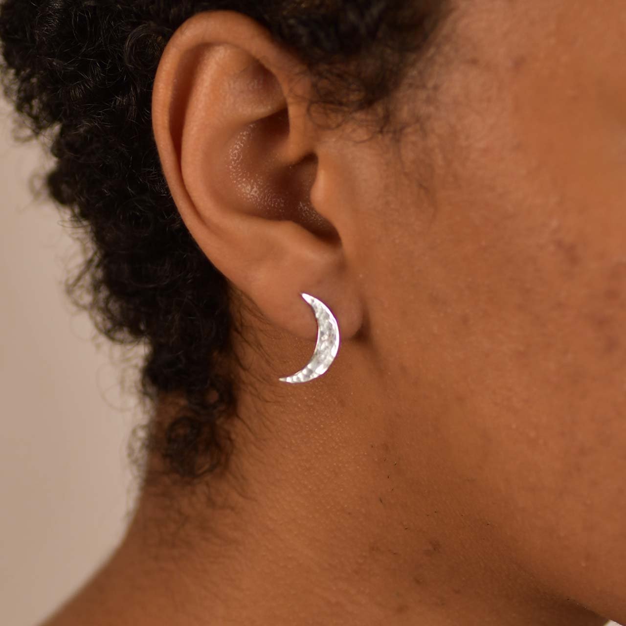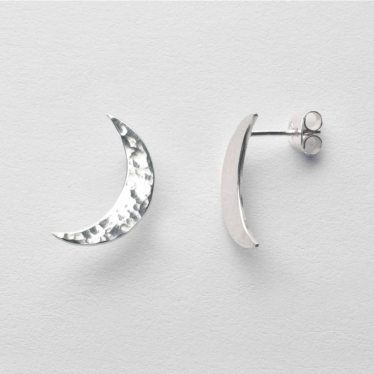 Ett par (2st) månar med stift handtillverkade i 925 sterling silver. Längd ca 17mm.. Välj mellan blank, svartoxiderad eller hamrad yta.