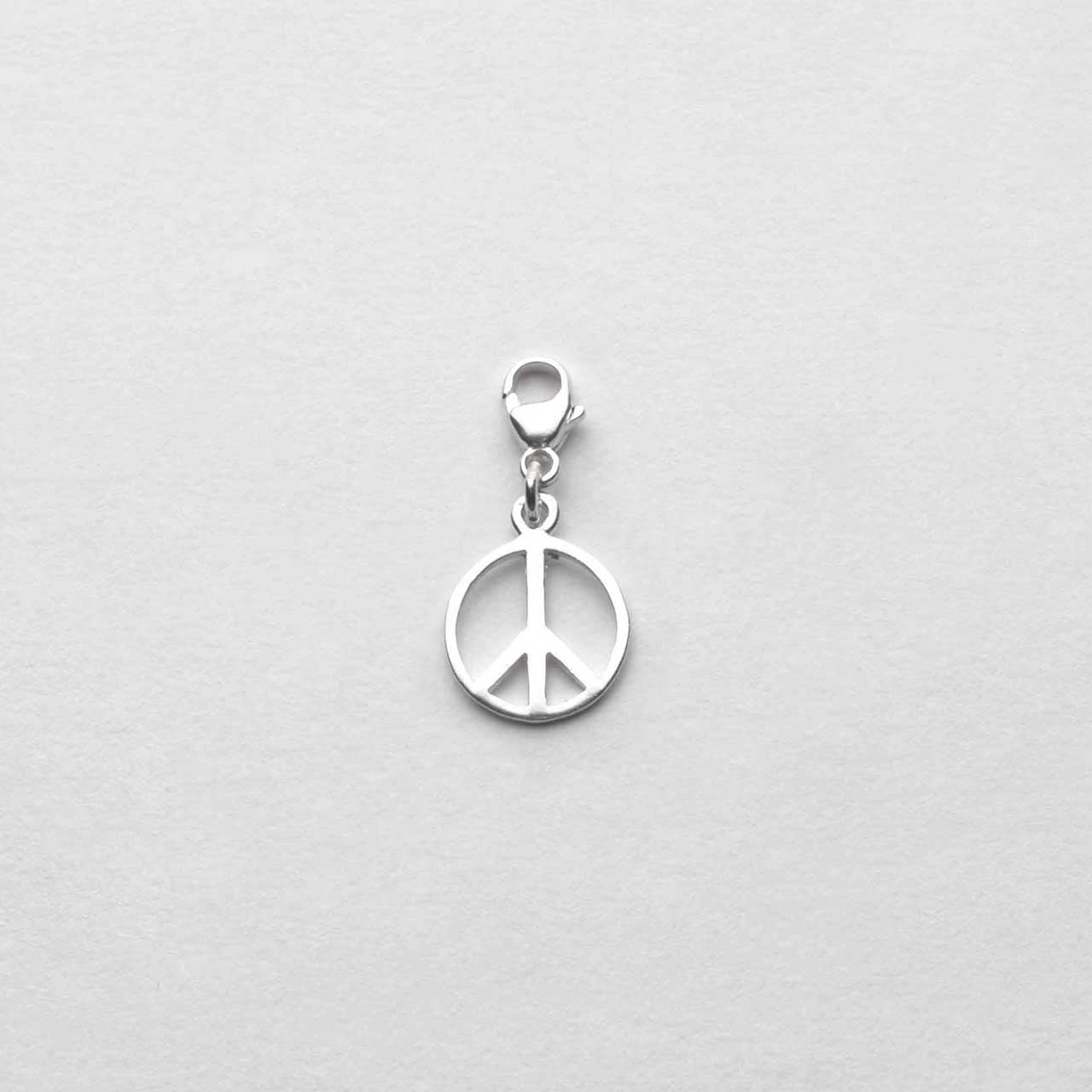 Fredssymbol i 925 sterling silver med lås som kan fästas på ett berlockarmband.