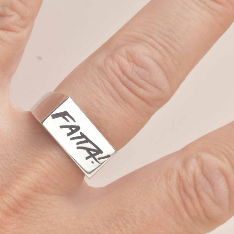 Mitt samarbete med FATTA inleddes 2019 då jag skapade en kollektion med silversmycken där allt överskott oavkortat gick till deras viktiga arbete.Såhär skrev FATTA vid lanseringen 2019:– Vi valde Feministsmeden på grund av hennes stora engagemang, men också för att hon använder sin talang för att sprida viktiga budskapmed sina coola smycken, säger Kitty Bardler från Fatta.– Jag känner mig otroligt hedrad att få uppdraget och ta över stafettpinnen från Johanna.Jag hoppas att den nya kollektionen i återvunnet silver ska bli minst lika populär och därmed kunna dra in stålar så Fatta kan fortsätta växa och göra fler stordåd!, säger Nathalie Wåhlin.Det nya smycket går att använda som örhänge, halsband och brosch.– När jag började fila på idén så ville jag att smycket skulle kunna ha flera användningsområden. Det blev ett 3 i 1 smycke, så att man lätt kan variera smycket efter sin egen stil för dagen. Med det hoppas jag att fler ska kunna bära smycket varje dag och därmed nå ut med budskapet till fler, säger Nathalie Wåhlin.De nya smyckena pryds av orden ”Fatta” och ”samtycke”.– Jag har valt att skapa lite mindre smycken än tidigare Fatta-kollektioner men ändå med ett tydligt budskap. Min tanke är att fler ska kunna bära smyckena till vardags och därmed göra ett statement och synliggöra Fattas arbete och skapa diskussioner om samtyckeslagen och hur den funkar, säger Nathalie Wåhlin.– Det känns mäktigt och otroligt kul att få lansera detta smycke och samarbete. Feministsmeden är en sedan länge stark kraft och allierad i den feministiska kampen, säger Fattas ordförande Olivia Björklund Dahlgren.