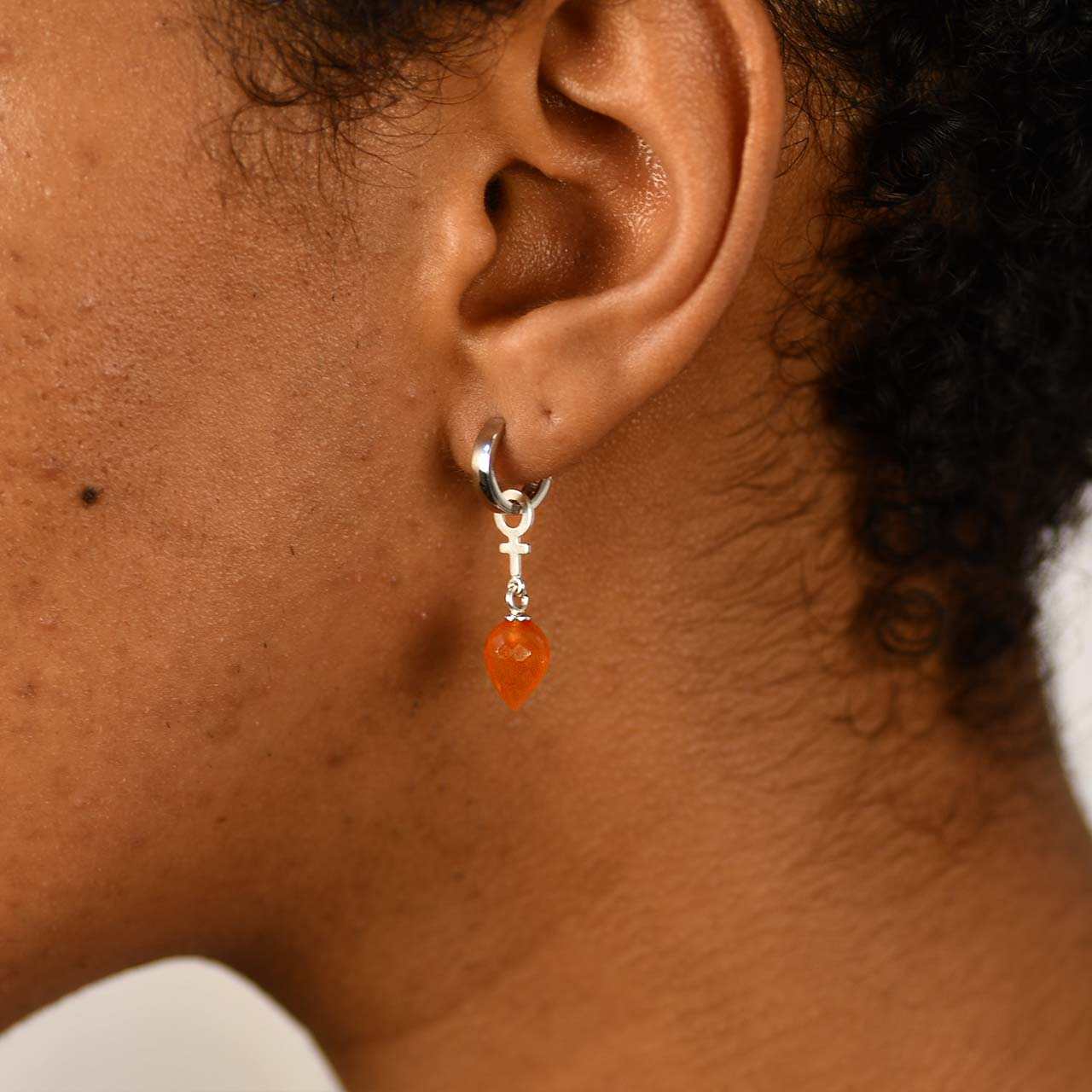Små feministörhängen i 925 sterling silver med karneoler. Silvercreoler öppnas genom att dras isär och stängs enkelt med ett klick!.