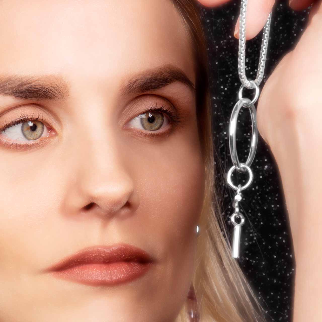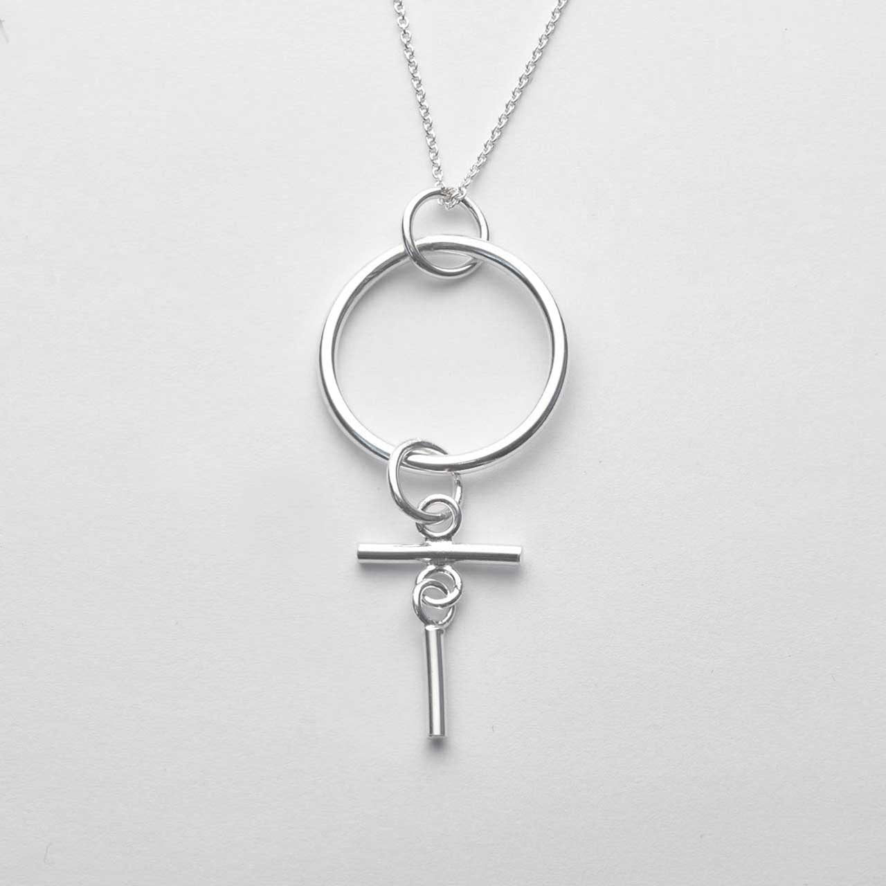 Stort hängsmycke i form av en kvinnosymbol som rör sig och dansar när du rör på dig. Handtillverkat i 925 sterling silver och mäter ca 7cm. Syns här på kedjan som är 1,5mm