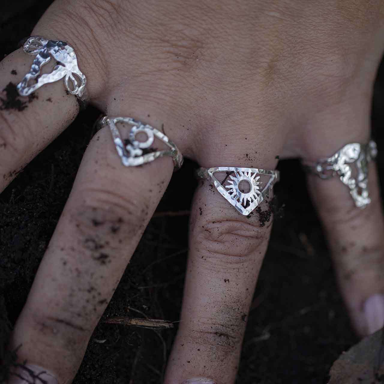 Solringen representerar livets kraft och energi, en påminnelse om den styrka och kraft som solen ger. Solens strålar ger bäraren mod och vitalitet. Handtillverkad i återvunnet 925 sterling silver.